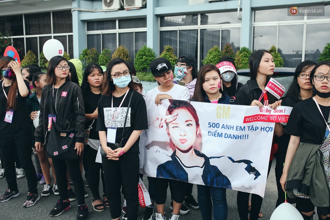 Fan tập trung khá đông nhưng cùng nhau xếp ngay ngắn thành hai hàng dài trước lối ra dự kiến của Dara